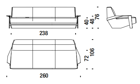 Poliuretano espanso ignifugo indeformabile a densità differenziate e fibra poliestere con struttura interna in legno. Braccioli e piedi in acciaio verniciato a polveri. I cuscini opzionali sui braccioli dei divani sono in fibra poliestere. La collezione Silver Lake non è sfoderabile.