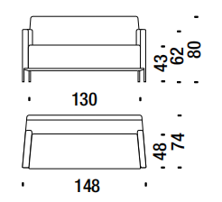 Struttura interna in legno rivestita con poliuretano espanso ignifugo e fibra poliestere. Profilo dei fianchi in acciaio cromato o verniciato a polveri. Sottopiedi in polipropilene. La collezione Steel non è sfoderabile.