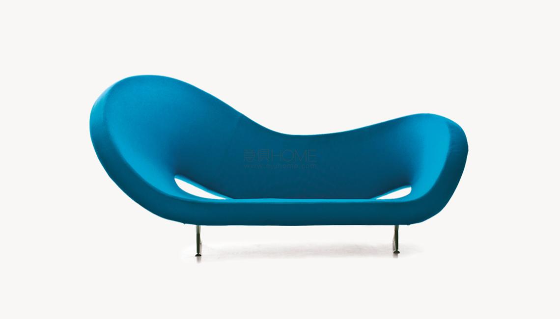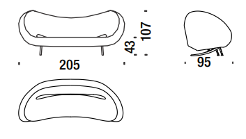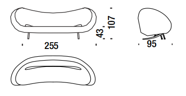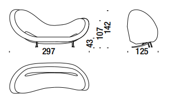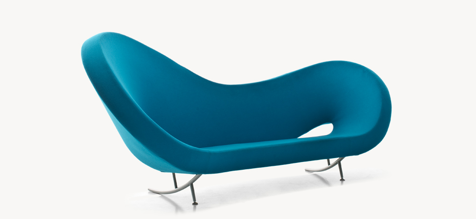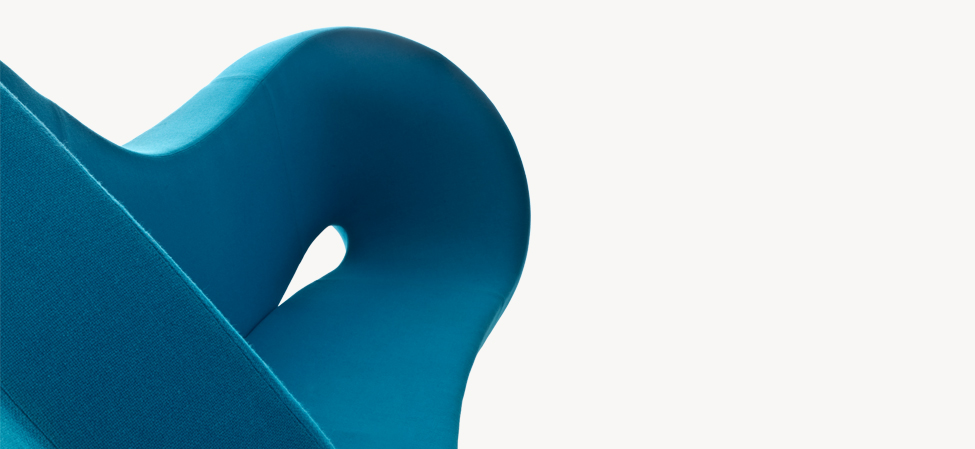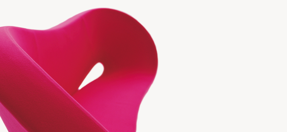 Linee curve in flusso continuo, figure-immagine disegnate in continuità, senza mai staccare la matita dal foglio. In origine un “donut”, che diventa idea per una scultura: schiacciata, rimodellata, un punto di vista ironico che supera l’approccio particolare del design industriale. Poi l’oggetto: sulla struttura interna, in vetro resina e fibra di vetro, un’imbottitura e poi un vestito cuciti su misura svelano la coincidenza tra il valore tecnico e quello espressivo del progetto Linee sensibili ma forti, mai interrotte, corrispondenza rigorosa tra superficie e forma, tra epidermide e corpo. Il tessuto invade lo spazio esaltando e potenziando la materia, senza sovrapporsi al flusso, senza interromperlo.