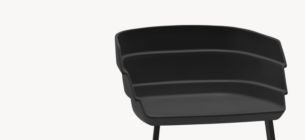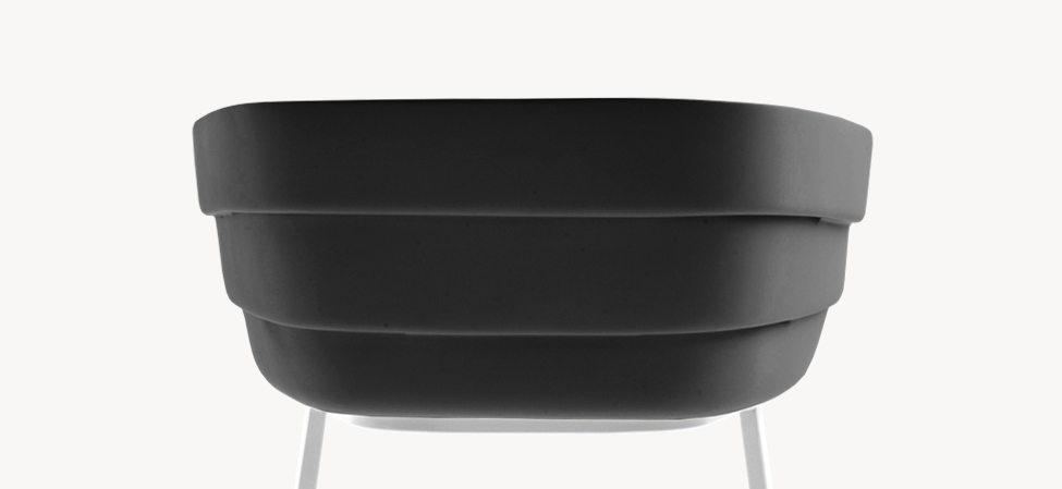 Scocca in polipropilene e base in acciaio verniciato.