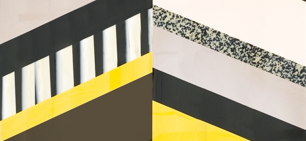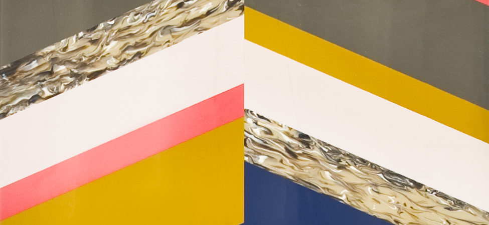 Top in Sintetica? metacrilato colorato e decorato a mano. Tagliato e composto come disegni riportati. Base in acciaio verniciato a polveri nero opaco. Sottopiedi in polipropilene.