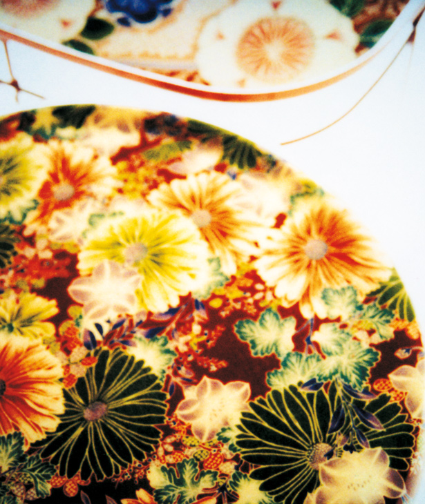 Piani d’appoggio decorati con i tessuti dei kimono co-stampati con resina di poliestere. Un’estetica elegante, assoluta, ispirata all’Ukiyo, uno dei concetti giapponesi più noti del XVIII secolo. Legato al realismo scintoista, secondo cui nulla può in realtà restare a lungo così com’è, Ukiyo per cui vivere, restare vivi in ogni momento, è il modo per raggiungere l’eternità, per quanto ciò possa apparire contraddittorio. La fioritura, da questa prospettiva, rappresenta il periodo più felice e radioso in cui la massima energia si diffonde ovunque. Nessuno, però, può dire se il fiore appena sbocciato esisterà ancora un attimo dopo o meno.