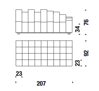 del pixel, inteso come singolo elemento di un’immagine, nasce il modulo base attraverso il quale il designer costruisce il suo progetto. Morbidi parallelepipedi a base quadrata, in diverse altezze, offrono una libertà compositiva che amplifica la modularità, la esaspera, promuovendola a condizione strutturale. Il risultato apre a infinite figure e composizioni, intersecando il mondo del design industriale con un approccio creativo aperto proprio del mondo dell’arte. I singoli moduli, apparentemente molto semplici, nascondono una grande complessità costruttiva, strutturale e produttiva. In basso più rigidi, per contenere il perno metallico; più morbidi nella parte alta, per garantire il massimo comfort alla seduta.
