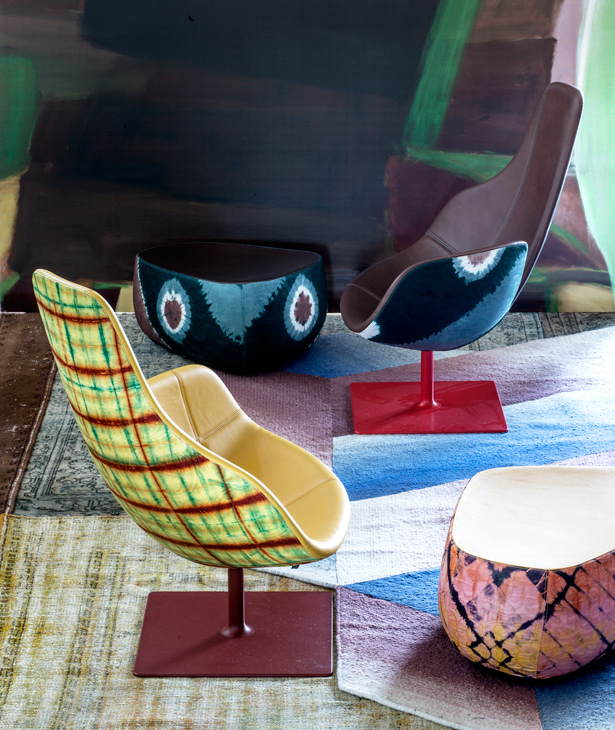 Da un frammento di conchiglia, rotto, levigato dalle onde, Patricia Urquiola disegna una collezione di sedute pensate per la casa e per gli spazi pubblici. L’influenza scandinava, evocata dal nome stesso, è nel riferimento ad Arne Jacobsen e nella presenza di un taglio allungato, metafora delle insenature delle coste nordiche. Come in un ciclo naturale la scocca della poltrona, ri-generata dal tempo e dall’acqua, diventa poltroncina e poi ancora sgabello. La forma spezzata, da concetto astratto, si trasforma in oggetto di design: linee dolci che sostengono e accolgono, evidenziate dall’accuratezza delle cuciture a vista in armonia continua con l’essenzialità della struttura.