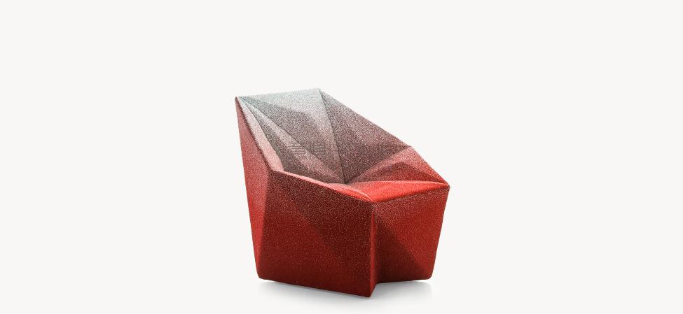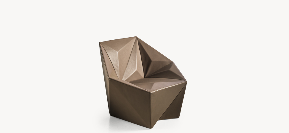 Libeskind si è profondamente ispirato alle forme geologiche naturali: cristalli, gemme, formazioni naturali di roccia. Per la collezione Moroso, il design riprende le sfaccettature asimmetriche delle gemme e ha una duplice valenza: creare una scultura per la casa o l’ufficio e ricollegarsi all’opera di Libeskind.