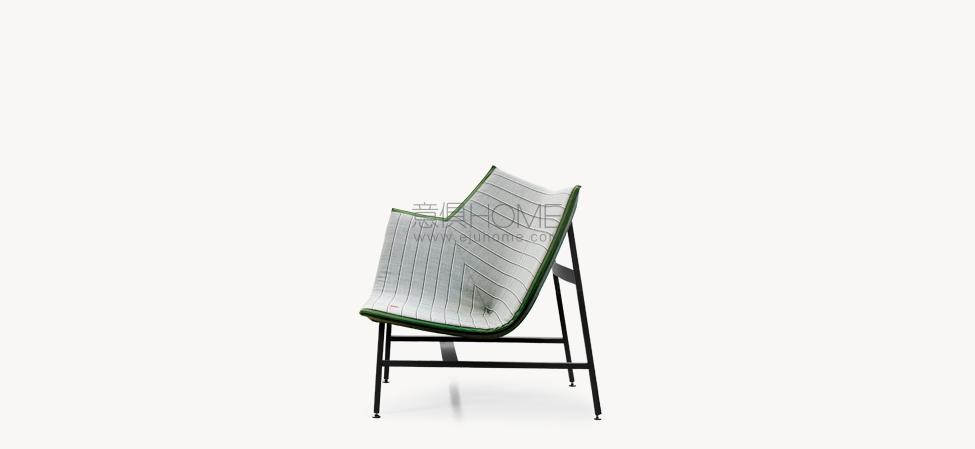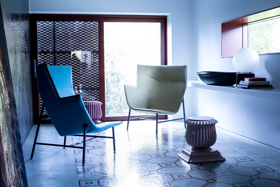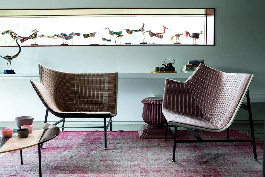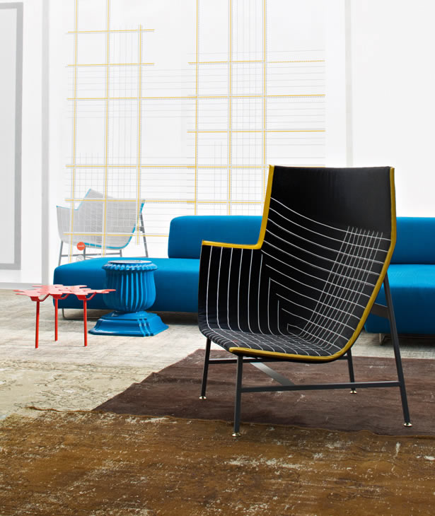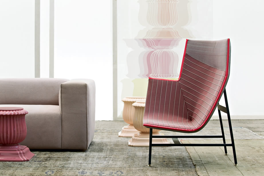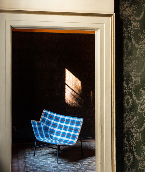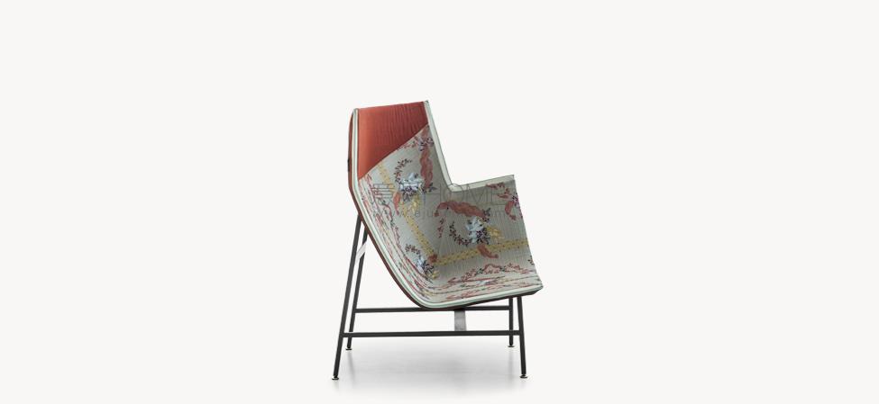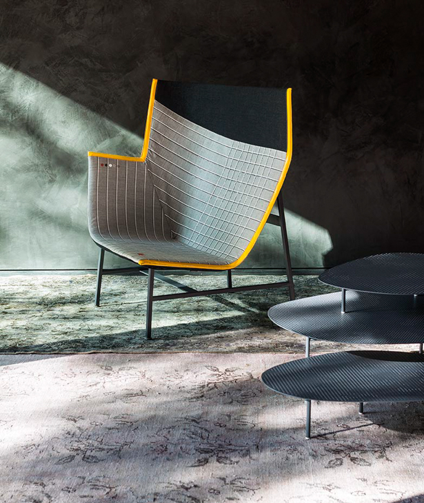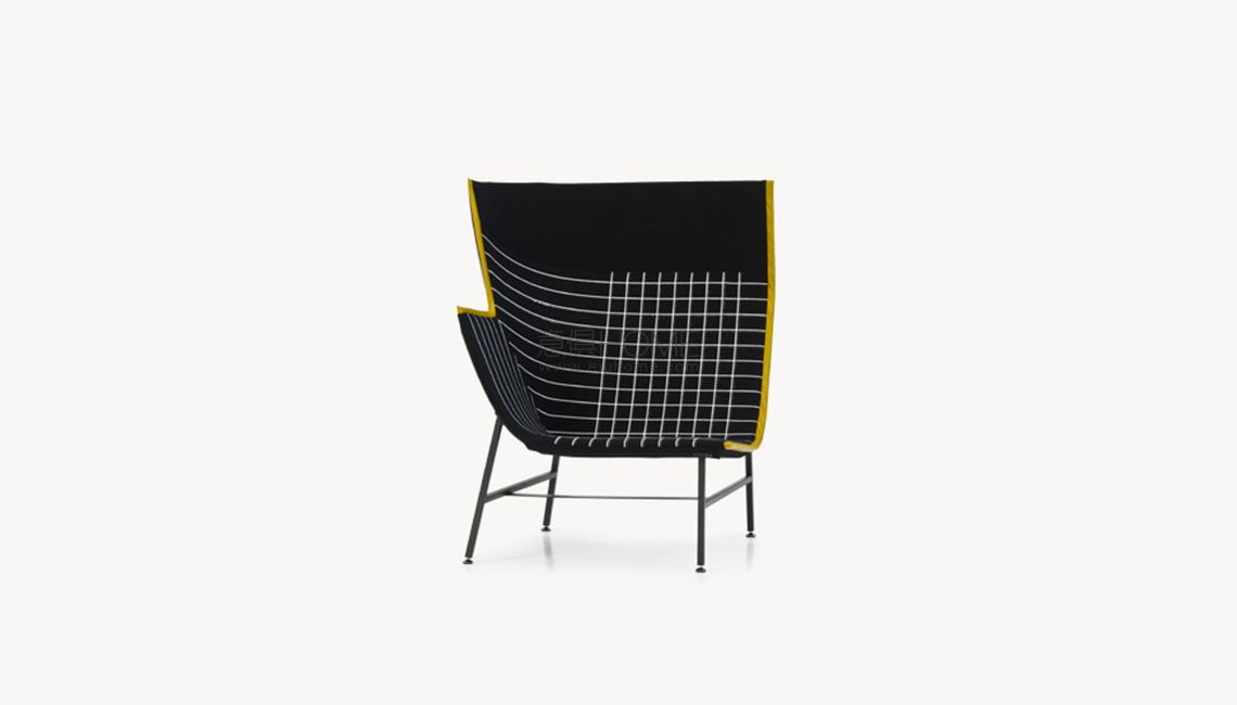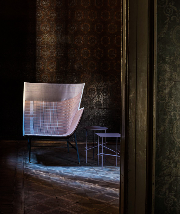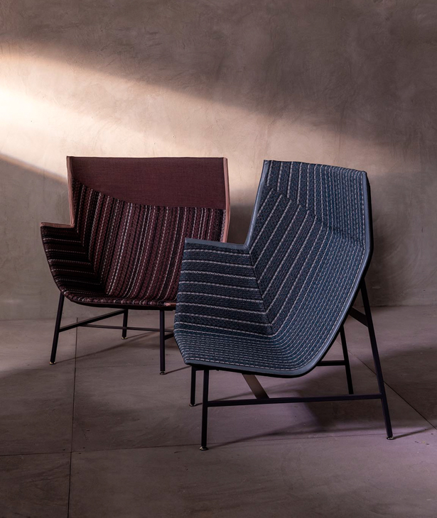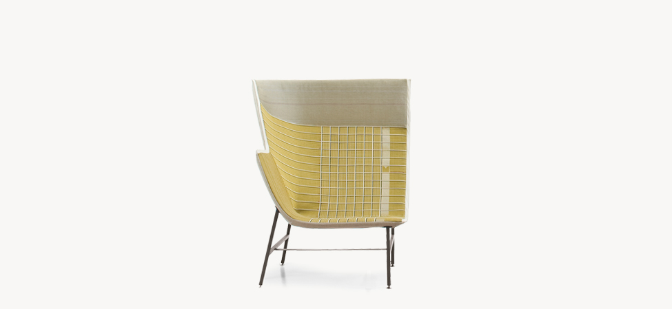 Una scultura funzionale, una seduta da lettura avvolgente e confortevole, resistente ma nel contempo leggera, sospesa come a sconfiggere la gravità. Paper Planes nasce dalla progettazione di un tessuto ispirato alla carta millimetrata: una forma derivata dal piegare e appuntire la carta esplorando forme e strutture, producendo angoli, linee e poligoni. L’apparente semplicità richiede però una magistrale abilità sartoriale. Durante la fase di imbastitura le righe del decoro, data la particolarità geometrica della seduta, impongono una perfetta convergenza, non lasciando al maestro artigiano il minimo margine d’errore.