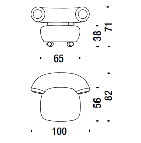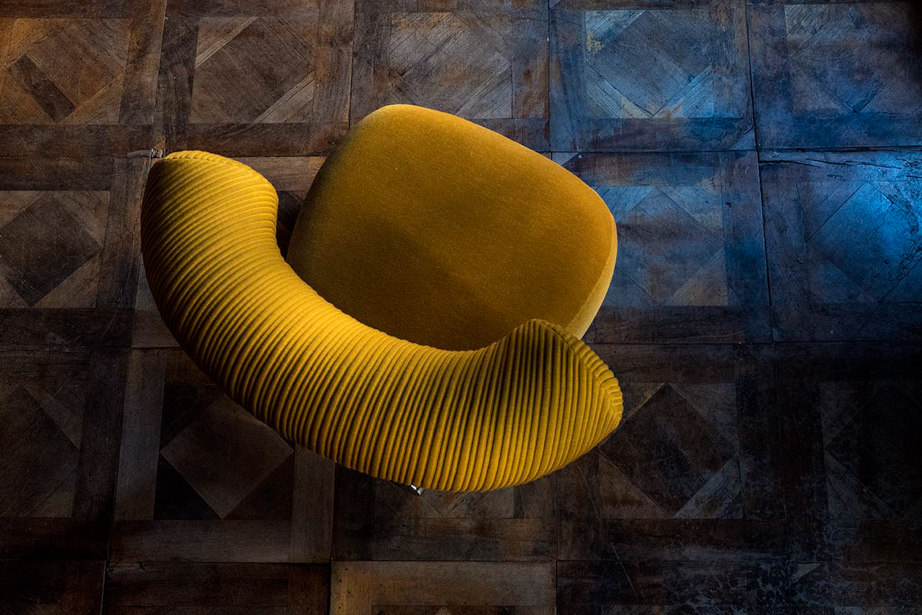Anteporre il grosso al fino, prediligendo una scelta in controtendenza rispetto alla più comune ricerca sulla forma sottile. E, nonostante questo, mantenersi leggeri, lievi. Il progetto si articola così attorno all’aspetto più rassicurante dell’oversize: la semplicità. La struttura, essenziale e robusta, è costruita con un tubo in alluminio verniciato a polvere dal diametro di 80 mm. Appoggiato sopra, un cuscino di seduta dalla corporatura rotondeggiante, velata suggestione all’idea del modulo gonfiabile. Lo schienale, come una parentesi bold, promette comodità. L’effetto, oltre alla naturale simpatia, è quello di una piacevole rotondità, disinvolta e leggera.