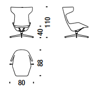 Espanso schiumato a freddo ignifugo con struttura in acciaio. Basamento a 4 punte verniciato girevole (cod. 0V6, 389). La poltrona è disponibile con trapunta imbottita (cod. 340) o con tessuto trapuntato (cod. 354). La collezione Take a line for a walk non è sfoderabile.