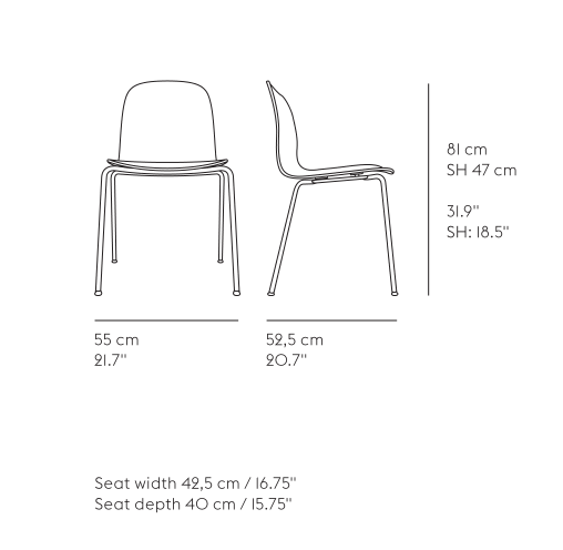 The slim tube legs and form-pressed veneer wood body of the Visu Chair create quiet lines while making it easily stackable, fit for conferences, office spaces, restaurants or home dining areas.