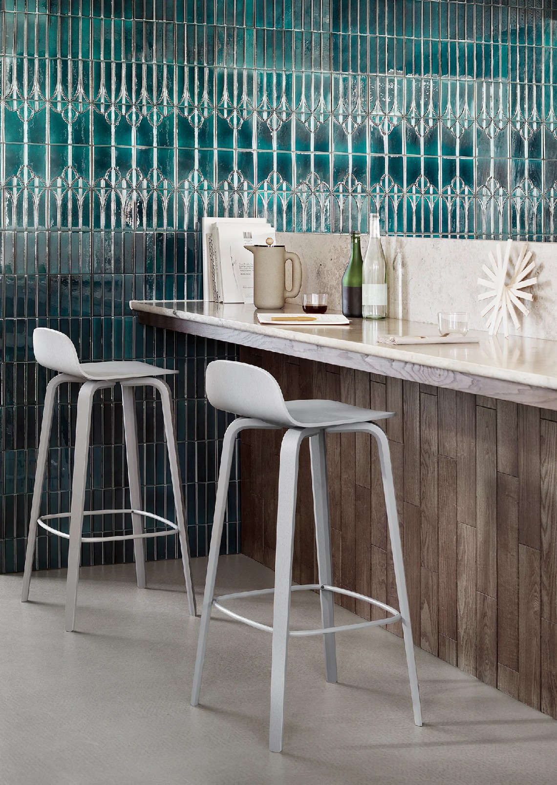 With its small curved back and long elegant legs, the Visu Bar Stool is a perfect accompaniment for any kitchen counter or restaurant bar. Made from form pressed oak, the gentle silhouette of the chair contrasts with the texture of the wood for a toned-down Scandinavian aesthetic.