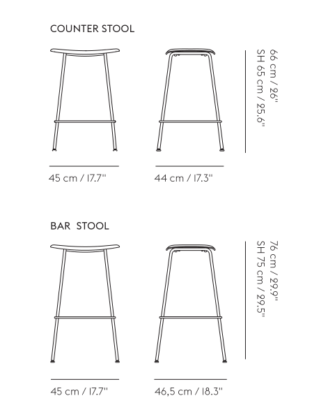 With an expression that is at once comfortable and harmonious, the Fiber Bar Stool is a design with an unobtrusive yet distinct identity. With its shell made in an innovative composite of plastic and wood fibers, the Fiber Bar Stool has a textured, matte surface and soft, inviting touch, paired with its embracing seat. Designed in two different heights, both available with or without backrest, the Fiber Bar Stool encapsulates the ideals of simply modern design with a human touch. When viewed from afar, the wood fibers of its shell blend into the surface for a matte finish yet appear when viewed up-close for a modern sentiment, joined by a wooden base.