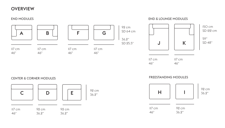 The Connect Modular Sofa brings a modern perspective to the typology, allowing for its user to customize the sofa for their exact spatial and aesthetic needs with 11 different modules. Designed with long, elegant lines, the Connect Modular Sofa's details of its small feet underneath for a hovering, light sentiment and pointy corners allows for the design to bring character to any space, all while complementing and enhancing its surroundings. Use the Connect Modular Sofa for a deep, modern comfort in any home, workplace, lounge area or hospitality setting.