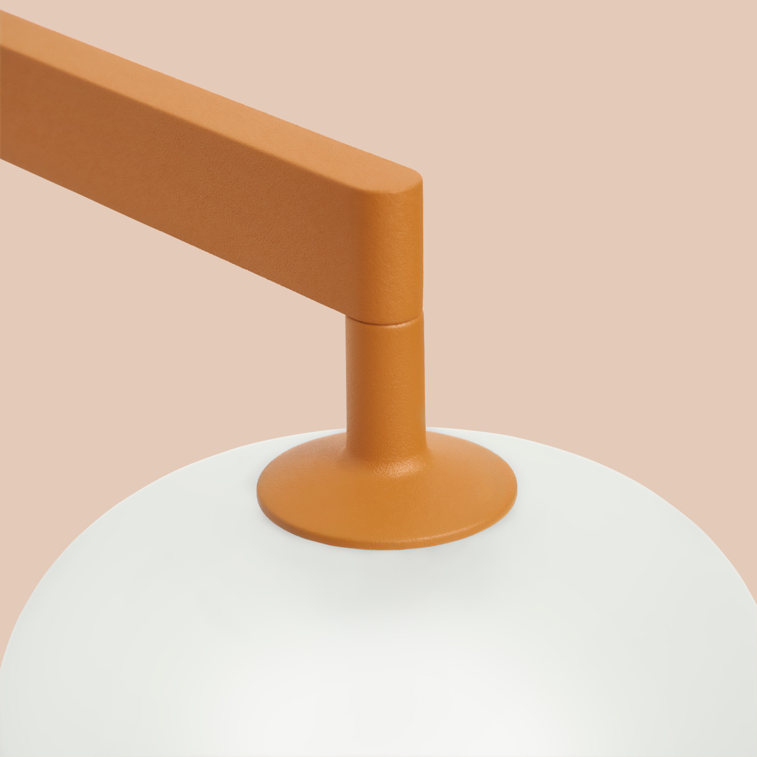 The Rime Wall Lamp brings an elegant perspective to the glass light through its semi-transparent glass that has been sandblasted for a refined expression. The design features a characteristic form, inspired by the shape of acorns, complemented by the geometric shape of its arm. The Rime Wall Lamp features a dimmability light source, allowing for its user to adjust the light intensity to their individual needs, be it in the home, a restaurant or a hotel room.