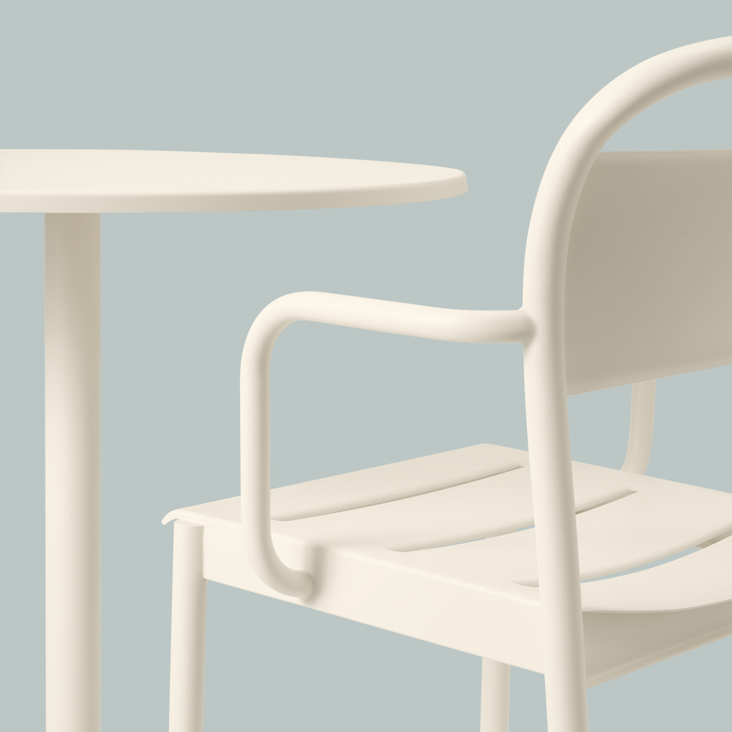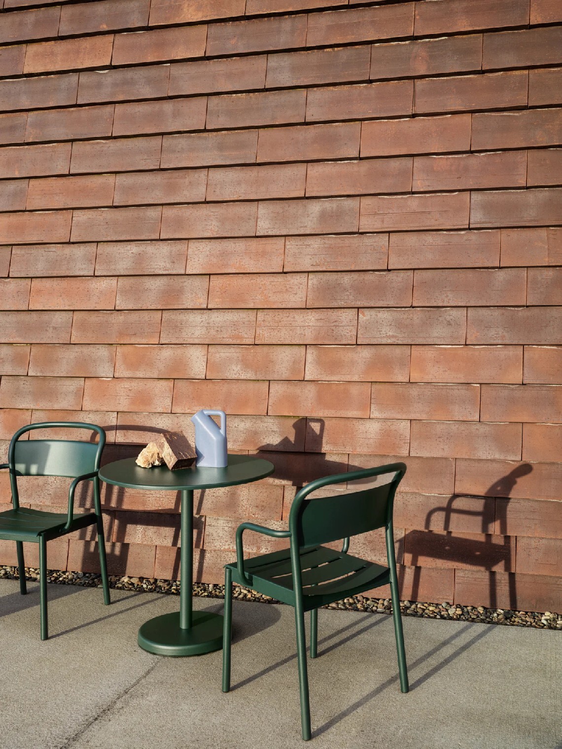 The Linear Café Table is characterized by its clean lines and elegant shapes, allowing for it to complement any outdoor setting. Use the design on its own or in company with the Linear Steel Armchair or Side Chair.