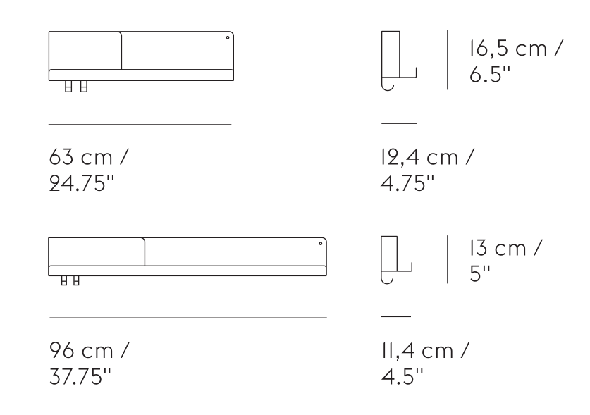 Imitating the look of folded paper yet shaped in metal, the Folded Shelves have a contemporary, functional character. The shelves come with two hooks and two bolts for mounting on the wall. The Folded Shelves are a modern and friendly way to add storage to any home or professional space.