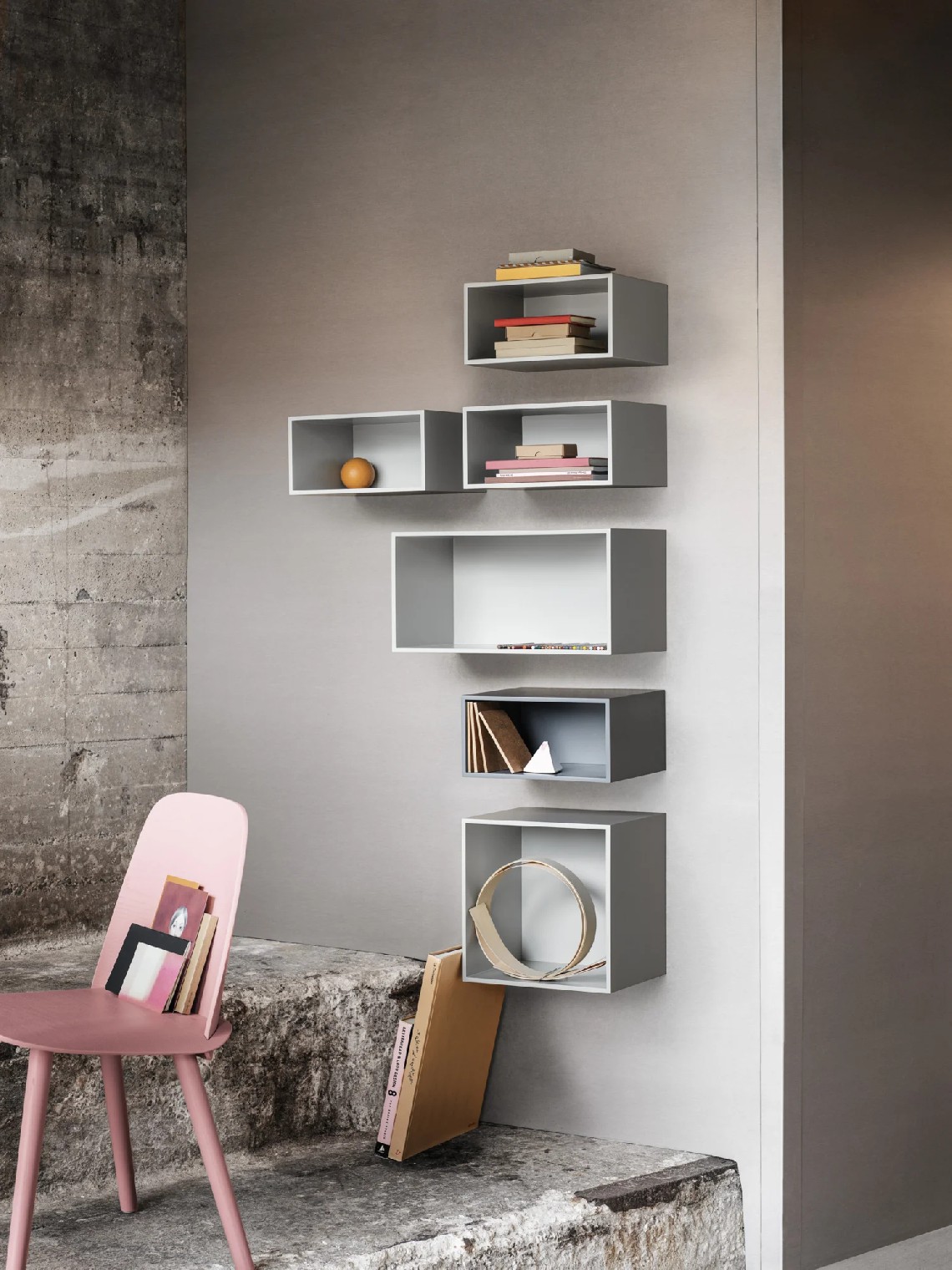 The Mini Stacked is a wall-hanging alternative to the Stacked Storage System with a lighter expression and smaller dimensions, available across various sizes and colors. The Mini Stacked Storage System are an elegantly functional match for smaller spaces such as kitchens, hallways and bedrooms as well as workplace and hospitality settings.