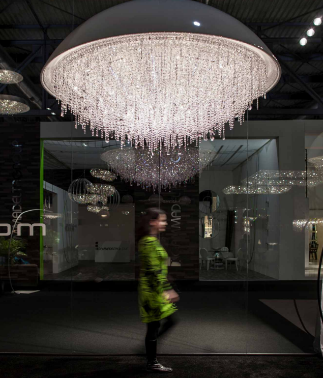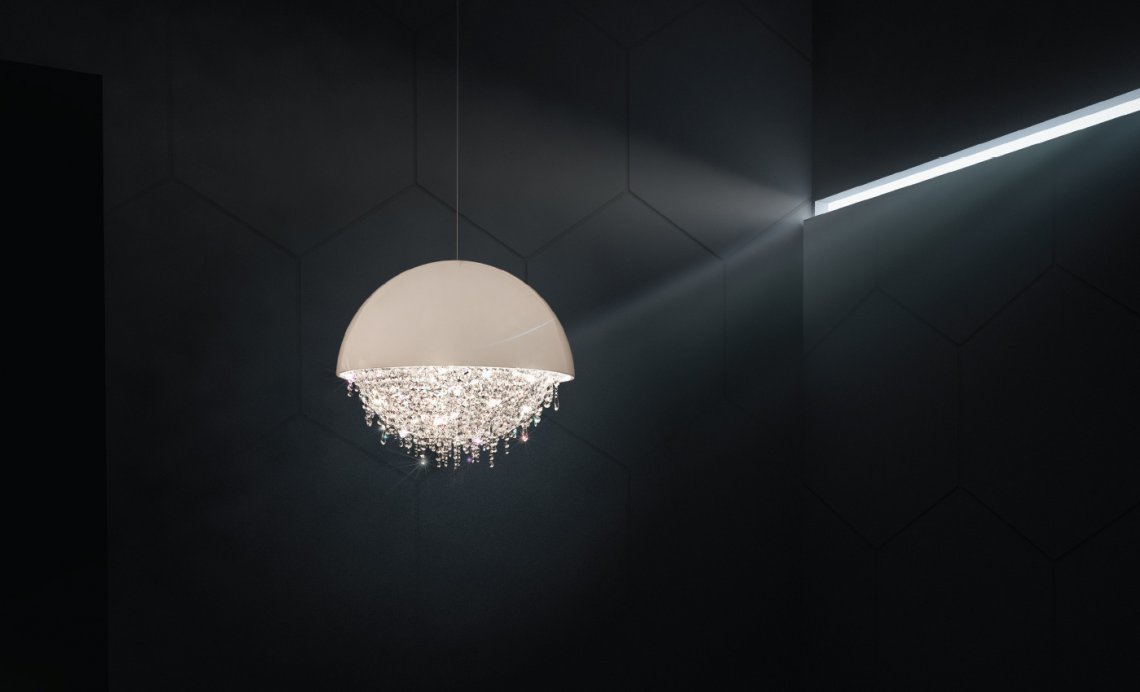 這款現代吊燈的精致色調提供多種顏色解決方案,而水晶裝飾可定制多種顏色。