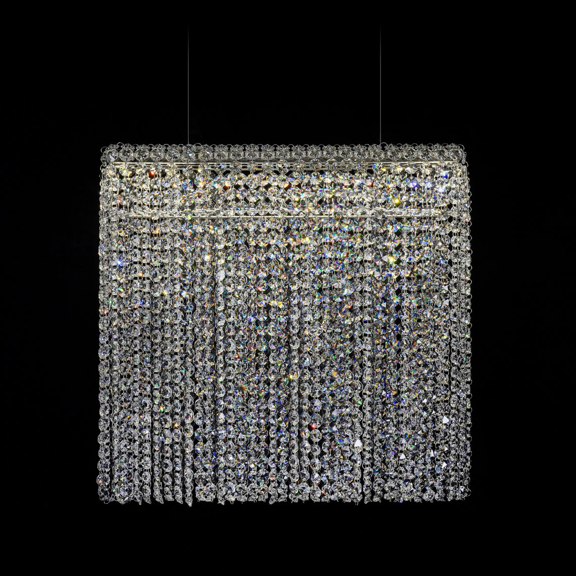 SILK 代表物質流動的輕盈——光滑、精致到最細微的細節和絕對令人驚嘆的現代吊燈。這個獨特的模型通過包含簡單但迷人的現代幾何形狀重新定義了水晶照明的概念。大堂、客廳或餐桌上方的完美選擇,您可以選擇標準尺寸或根據您的需要的透明或彩色水晶組合。