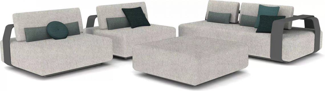 Kumo is a light and playful contemporary seating island with pouf. Japanese for cloud, Kumo invites you to create your personalised outdoor cocoon. It comes in different shapes and sizes. The movable armrests and back supports are easily adjusted to create either a comfortable sofa or stylish lounger, a luxurious lounge chair or a relaxing footrest.