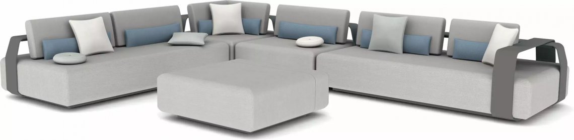 Kumo is a light and playful contemporary seating island with pouf. Japanese for cloud, Kumo invites you to create your personalised outdoor cocoon. It comes in different shapes and sizes. The movable armrests and back supports are easily adjusted to create either a comfortable sofa or stylish lounger, a luxurious lounge chair or a relaxing footrest.