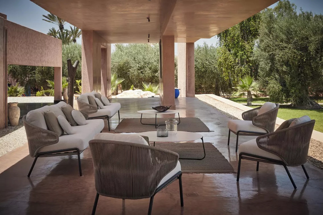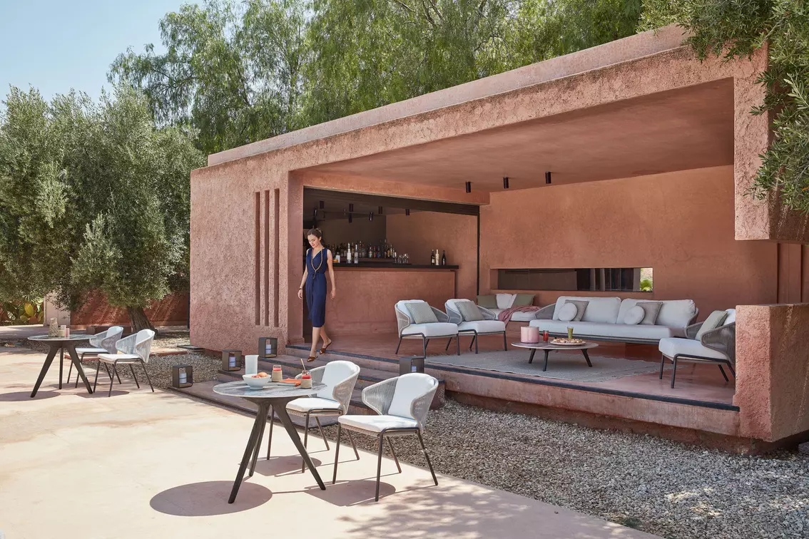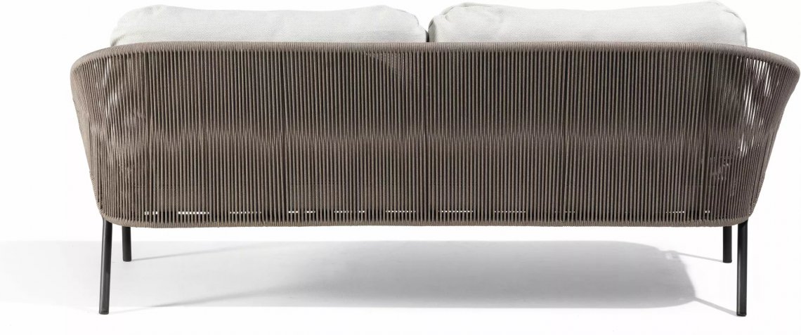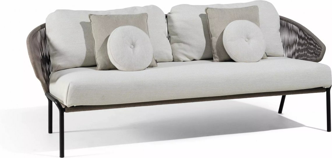 The unique, airy design of the Radoc chair, footstool, lounge chair and sofa collection is perfect for exquisite moments of warmth and closeness. The wrap-around back and armrests, made entirely out of rope, blend seamlessly and give each piece a neomodern yet timeless look and feel. Keep it sober or opt for matching backrest cushions designed for optimal seating comfort for long get-togethers.
