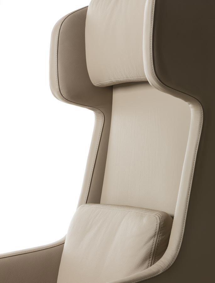 Upholstered swivel armchair. Upholstery fabric or leather.