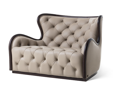 Armchair with wooden structure and capitonè. Upholstery in fabric or leather.