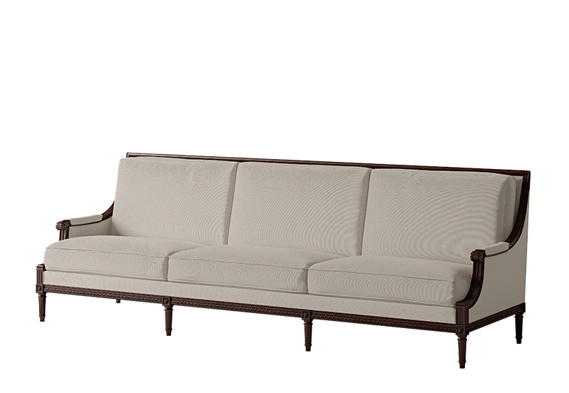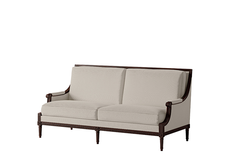 Armchair. Solid wood structure completely padded. Base with solid wood sculptures in ebony-coloured polishing.