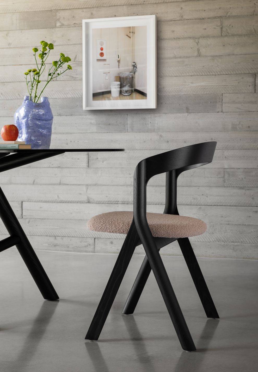 Bice è una sedia snella e a tratti insolita. Nel suo design essenziale spicca uno schienale a sventola, eccesso capace di equilibrare e caratterizzare la sua struttura.