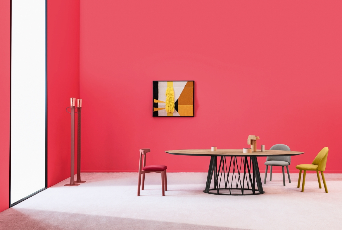 Acco is an elegant dining table with a strong character that resists labelling. It displays a mature, sophisticated language, which is developed through the design of the base frame with its distinct regular pattern of wooden lines.