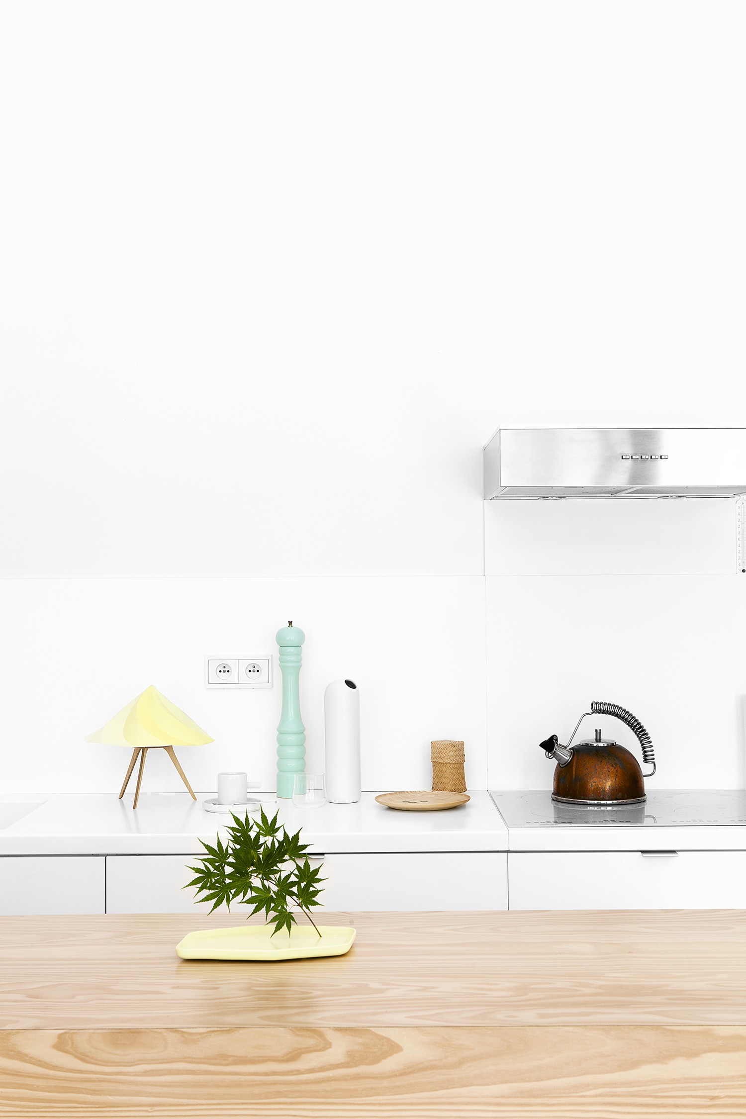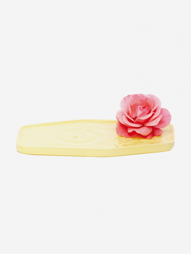 Traditionally vertical the vase becomes a stretch of water. Three holes of different diameters can hold branches and flowers.