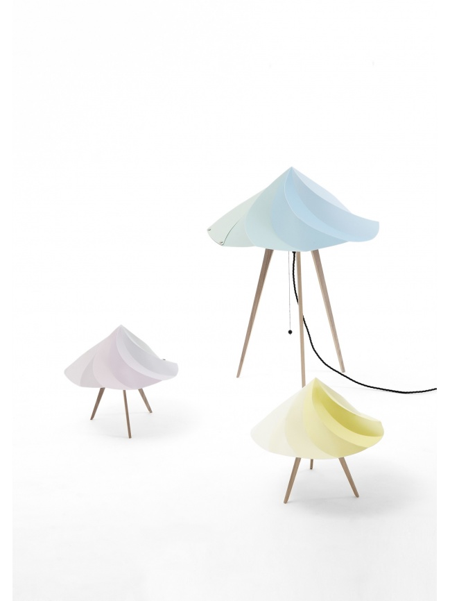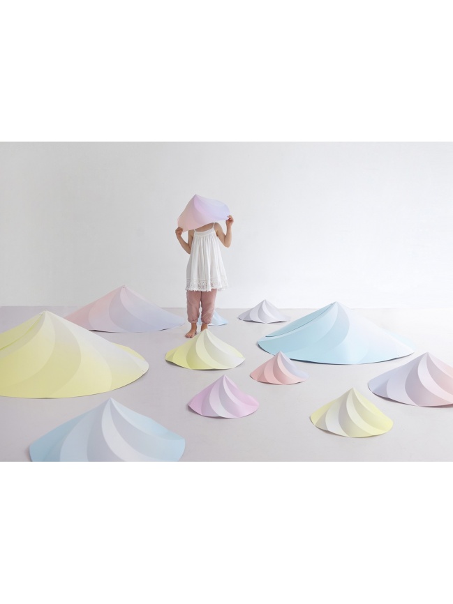 The Chantilly lamps by Constance Guisset create complex volumes based on a highly simple yet ingenious system of folds. The lampshade takes shape in the single closure movement required to assemble it. Small, large or to be suspended, the Chantilly lamps follow the delicious movement of the icemaker's siphon and enhance it through the use of subtle colours