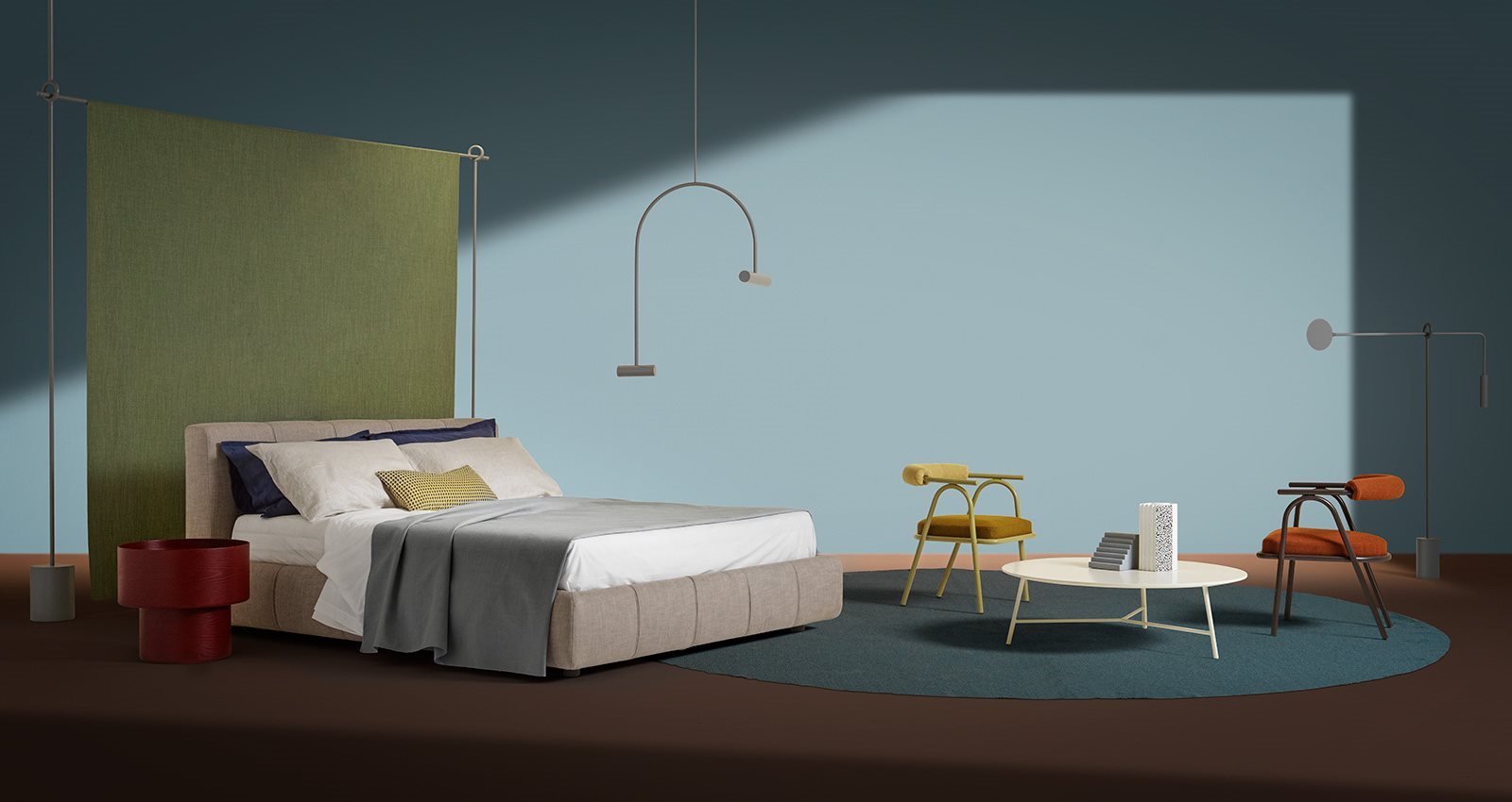 A bed which stands out for the elegance of its proportions and the remarkable soft shape. The headboard and base feature meticulous sartorial working which creates a unique, distinctive design.