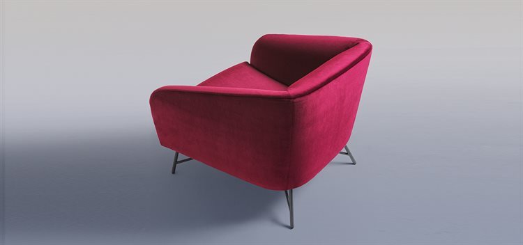 Armchair. Wooden frame covered with polyurethane foam in different densities and polyester fiber lining. Leather or fabric covers. Chrome-plated or lacquered steel base.