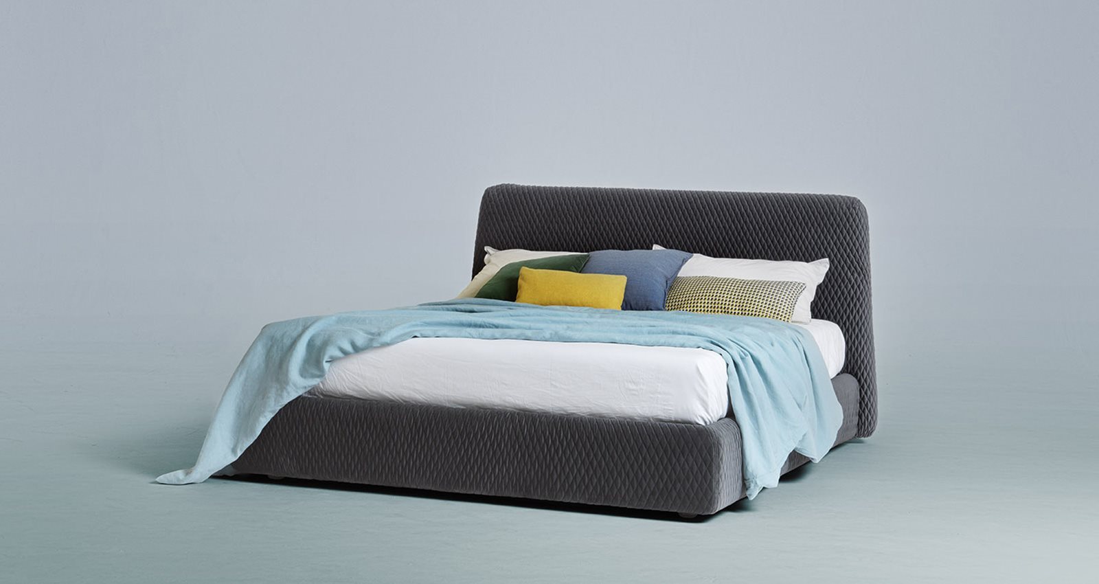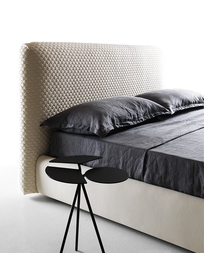 Welcoming, thanks to the soft and rounded design of its base, Konan is all about understated elegance, which can be seen above all in the headboard covering. Infact, its three-dimensional effect, created by the exclusive working of the quilted knitted fabric, orquilted velvet, plays the leading role in this piece of furniture, creating a strong visual impact. With a practical storage compartment making intelligent use of space, Konan meets all requirements in terms of style and functionality, both for private homes and the contract sector.