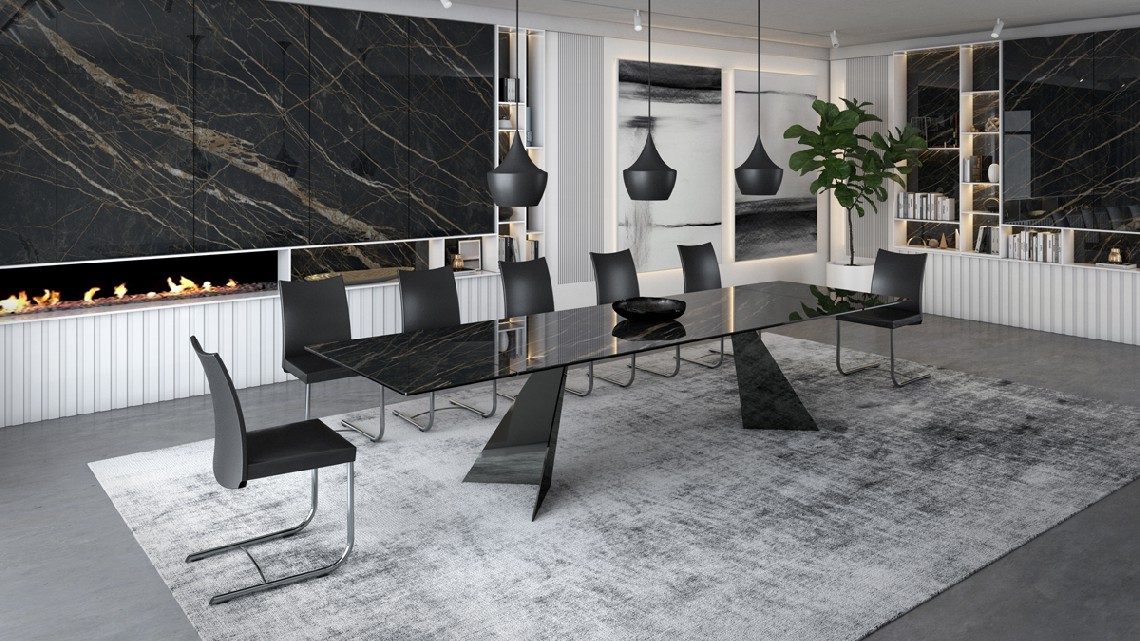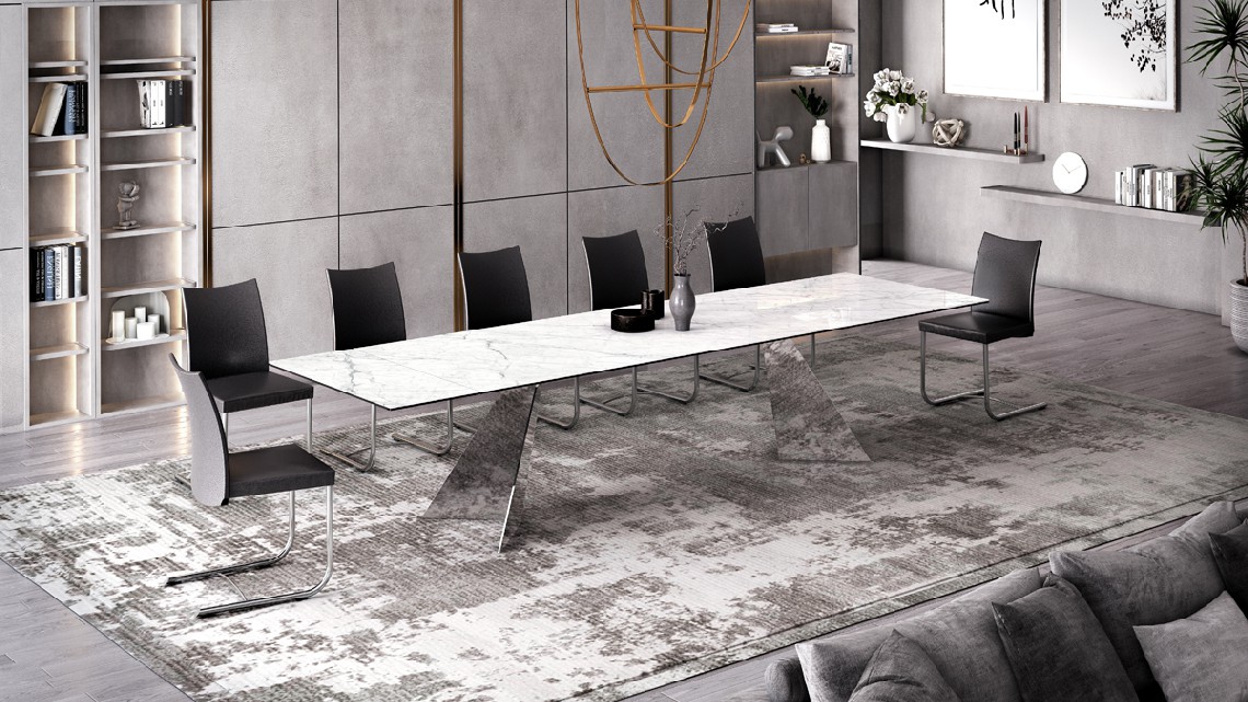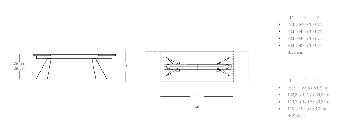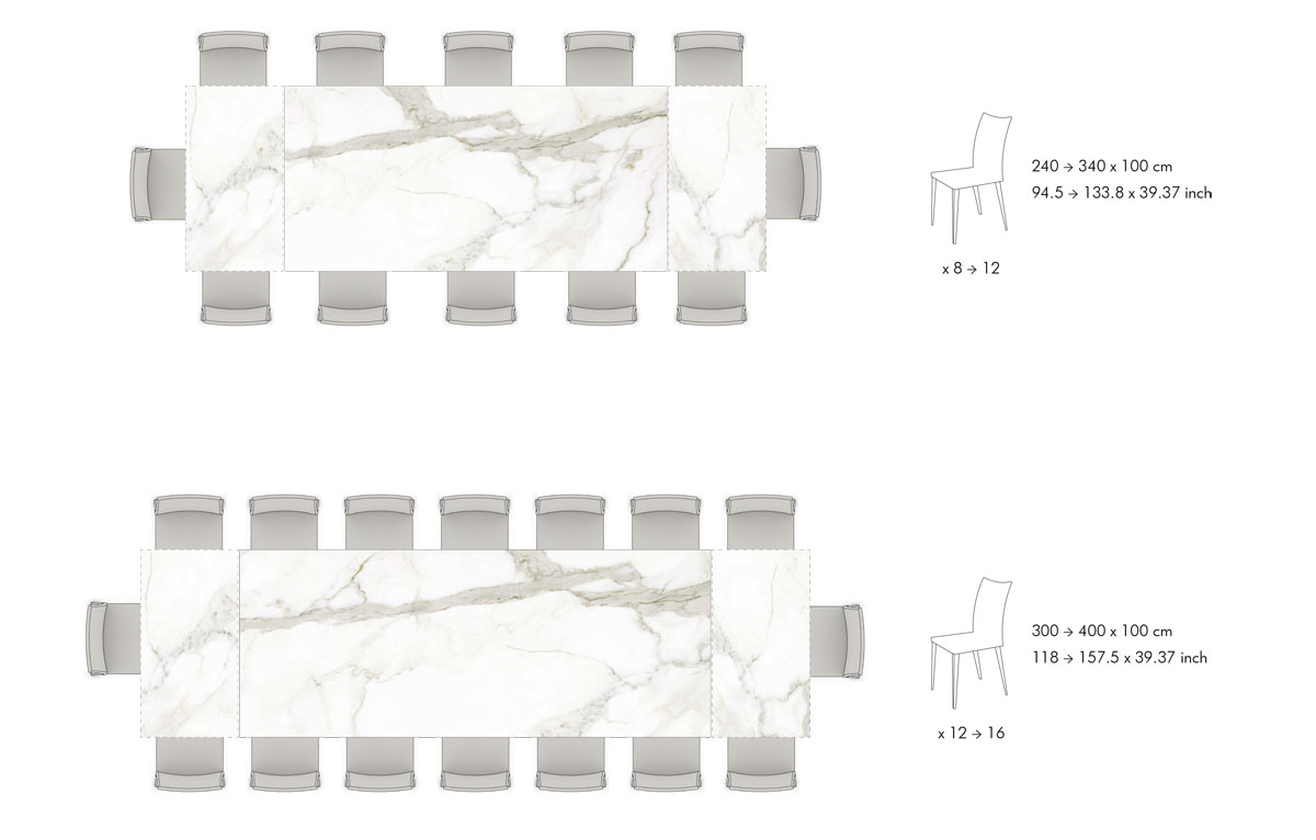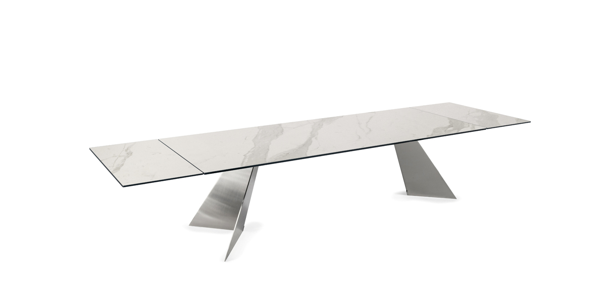 THE GIANTS è LA NUOVA COLLEZIONE DI TAVOLI ALLUNGABILI DI GRANDI DIMENSIONI. LO SPECIALE MECCANISMO NAOS PERMETTE, TRAMITE LE DUE PROLUNGHE, L'ALLUNGAMENTO DEL PIANO DI 100 CM (50 CM CIASCUNA). LA DIMENSIONE MASSIMA DEL TAVOLO CHIUSO è 240 CM PER ARRIVARE A 400 CM APERTO. PIANO DISPONIBILE IN VETRO O IN CERAMICA. GAMBE IN METALLO VERNICIATO O CROMATE.