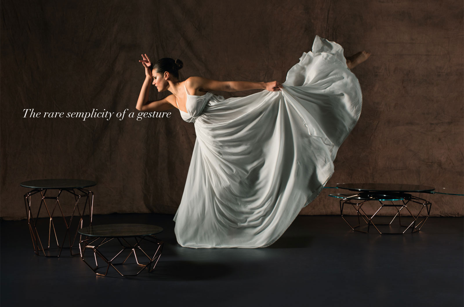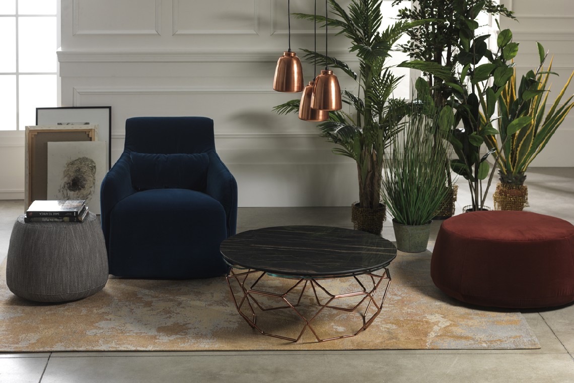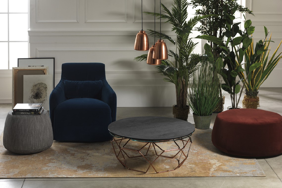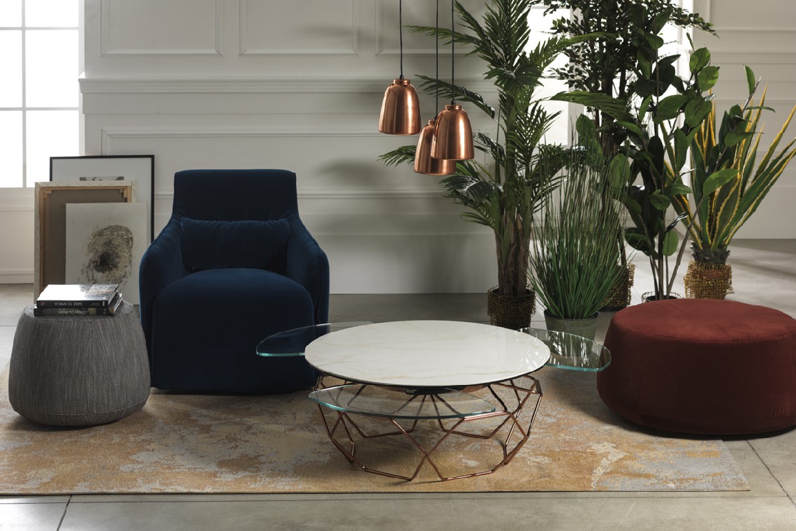 TAVOLINO ESTENSIBILE CON PIANI IN CERAMICA E CRISTALLO, BASE IN ACCIAIO VERNICIATO O GALVANIZZATO. DOTATO DI UN INNOVATIVO MECCANISMO CHE, ATTRAVERSO LA SOLA ROTAZIONE DEL PIANO SUPERIORE, PERMETTE AI TRE PIANETTI SOTTOSTANTI DI APRIRSI. DISPONIBILE ANCHE SENZA MECCANISMO.