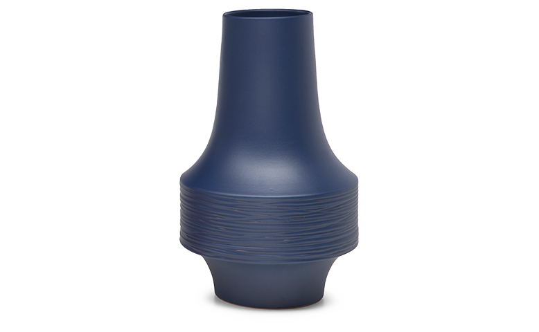 Laf花瓶是對普利亞一種青銅容器的重塑和簡化,更凸顯干凈利落的切割線條和富有現代感的釉面。刮擦技術讓中心環的紋理更為豐富。