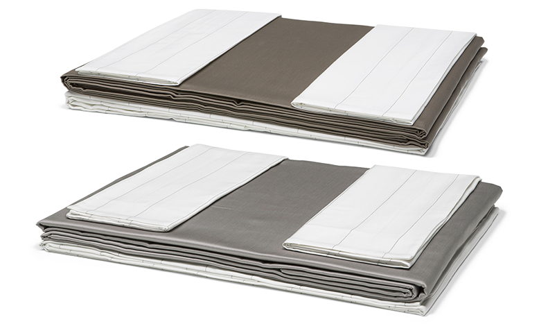 FRAME 和 PIN STRIPE以優(yōu)質棉緞和亞麻布裝飾,盡顯意大利精湛制衣工藝。Frame以精美撞色鑲邊為特色,Pin Stripe則因寬條紋而別具一格。