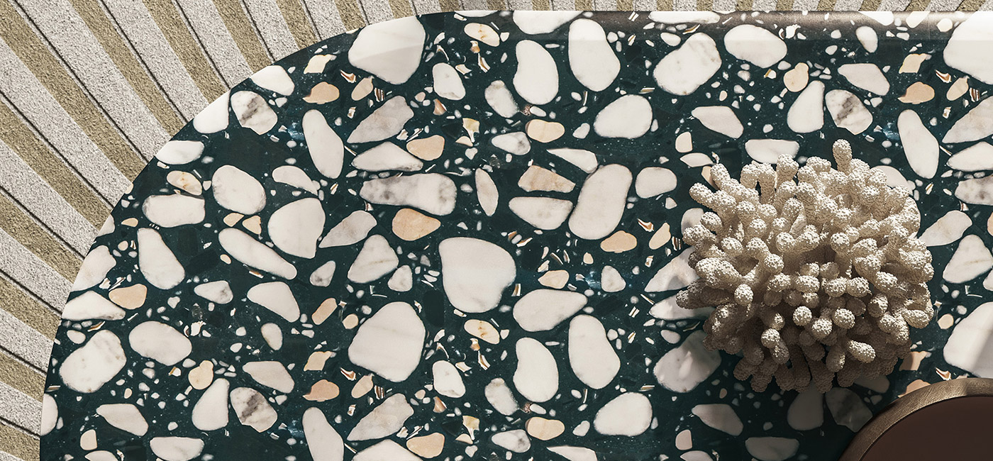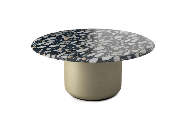 Voyage是一款造型蜿蜒的雕塑桌。有橢圓形和圓形兩種版本可供選擇,其特點是有兩個金屬包覆的淺金色啞光金屬單體基座。