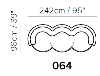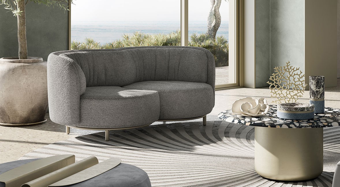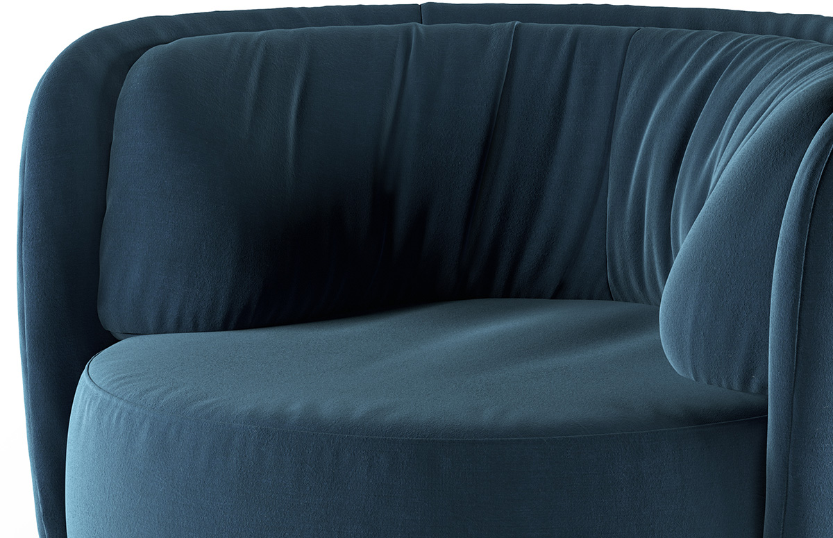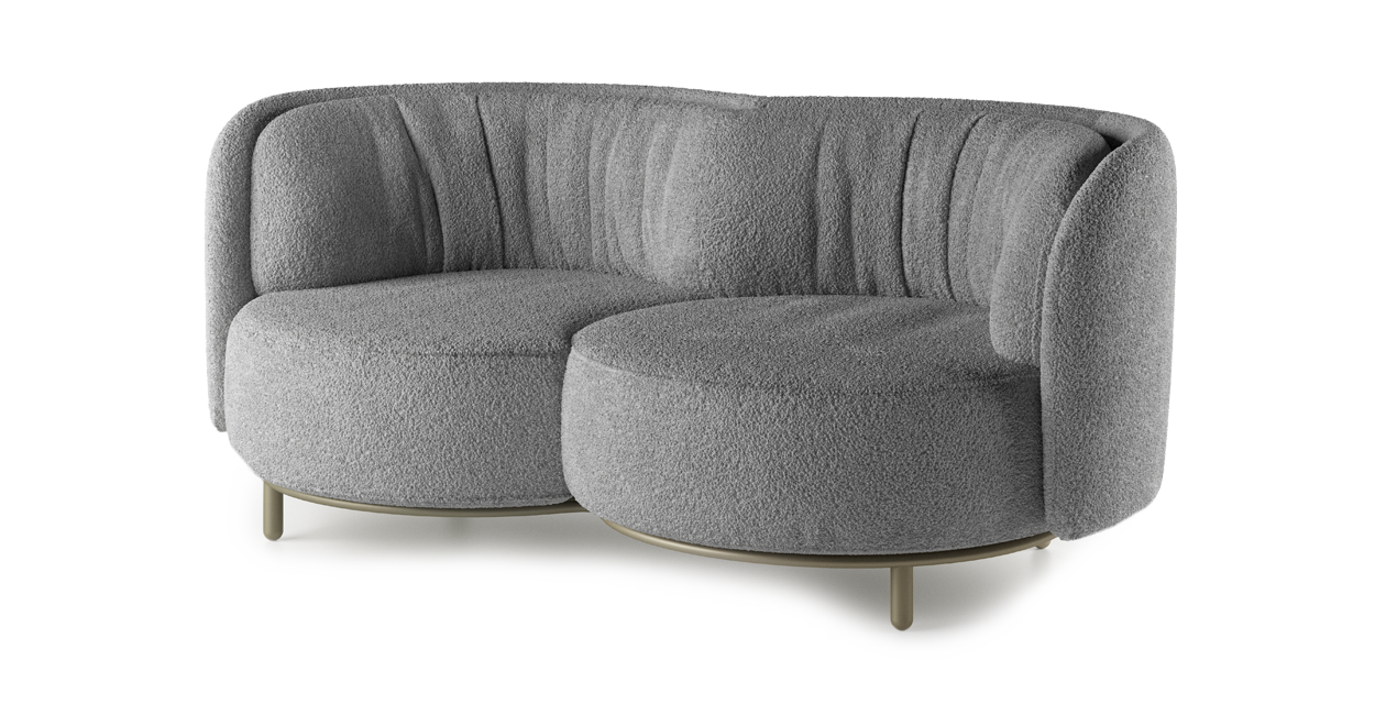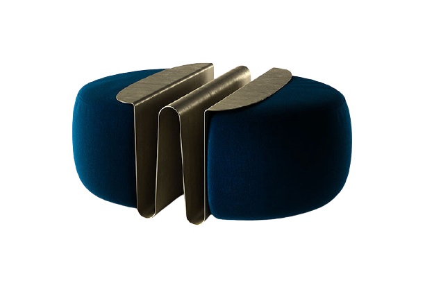 繭形Wave沙發是該系列的主要產品之一,其形似波濤,靠背和坐墊的包線創造出一個誘人的私密空間。此外,兩個半月形組件組成的腳凳中心可由一個典雅的淡金色金屬雜志架配件連接在一起。