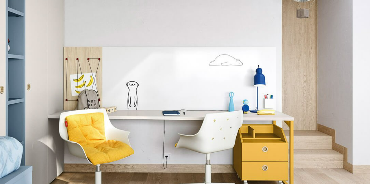 Il piano dello scrittoio si può combinare con fianchi dritti o a L, che sono disponibili in tutti i colori di Nidi!