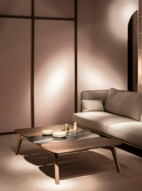 The singularity of this mirror is base don its caring proportions; a hand-made natural walnut shelf combines the softness lines of the mirror.