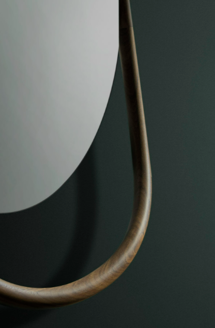 The singularity of this mirror is base don its caring proportions; a hand-made natural walnut shelf combines the softness lines of the mirror.