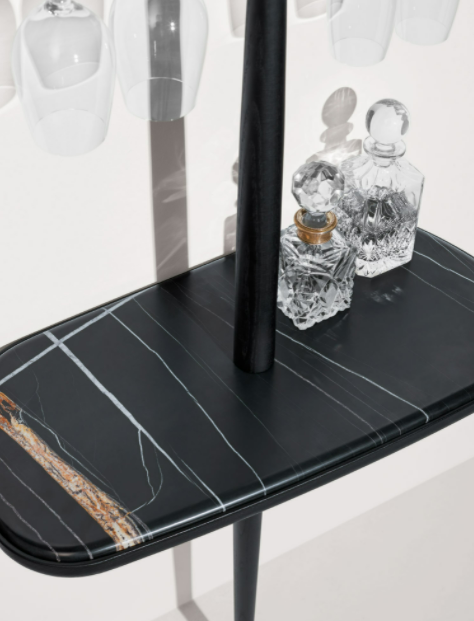 The singularity of this mirror is base don its caring proportions; a hand-made natural walnut shelf combines the softness lines of the mirror.