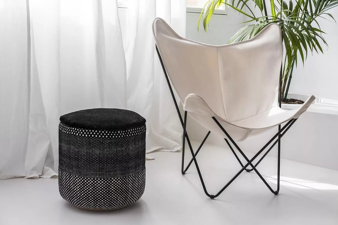 The collections Tres and Persian Colors come together to create a very special pouf, a lightweight cylindrical accessory, manageable and adaptable to any space, presented in two models: Black and Vegetal.
