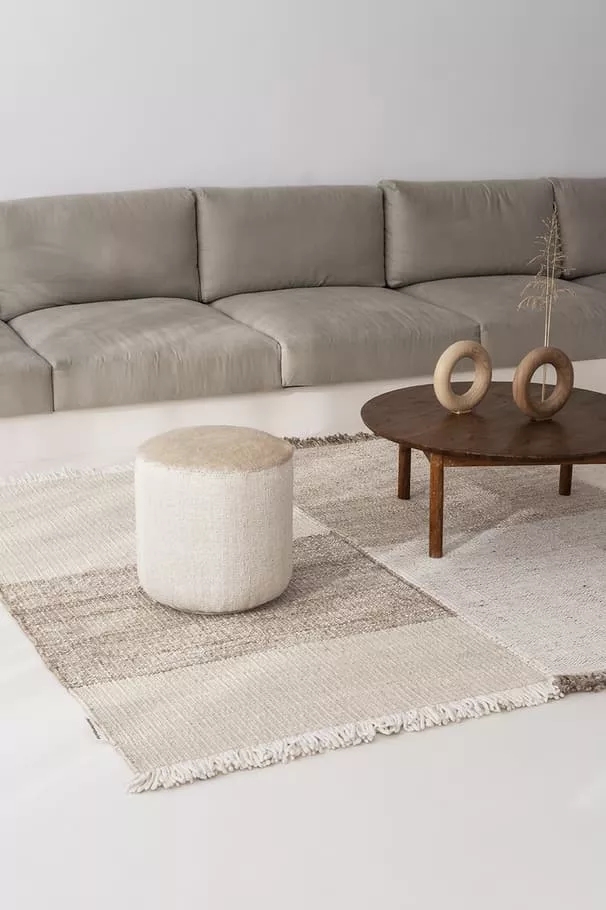 The sides of the Tres Persian Pouf Black are made with nanimarquina’s Tres black rug and the seat is made with Persian Colors re-edited in matt black. The sides of the Tres Persian Pouf Vegetal are made with the Tres Vegetal rug and the seat with the Persian Colors re-edited in natural matt color.