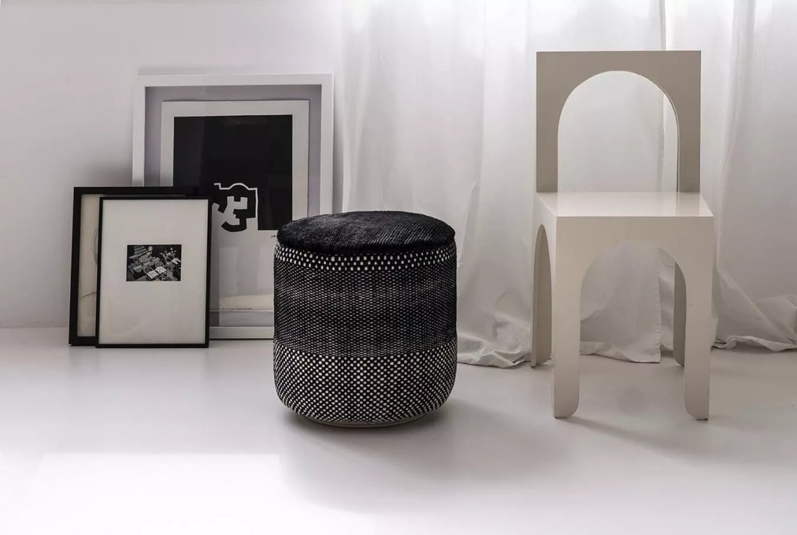 The collections Tres and Persian Colors come together to create a very special pouf, a lightweight cylindrical accessory, manageable and adaptable to any space, presented in two models: Black and Vegetal.