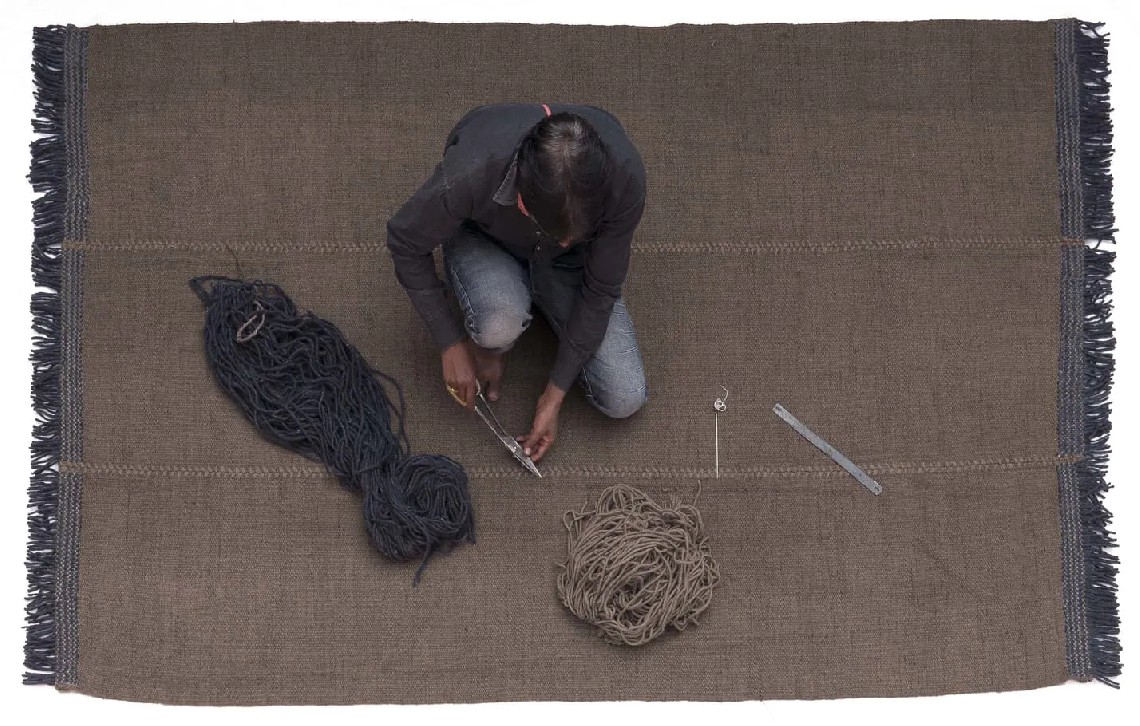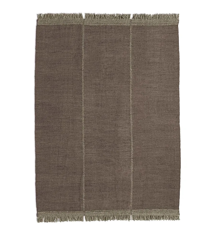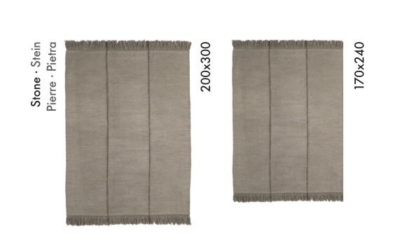 Create your own rug: choosing between two sizes, four colours, and four different finishes. You can contrast seams, add different types of fringes or opt for colourful stitches. Infinite results are possible; each detail makes a difference, ensuring your rug is unique.