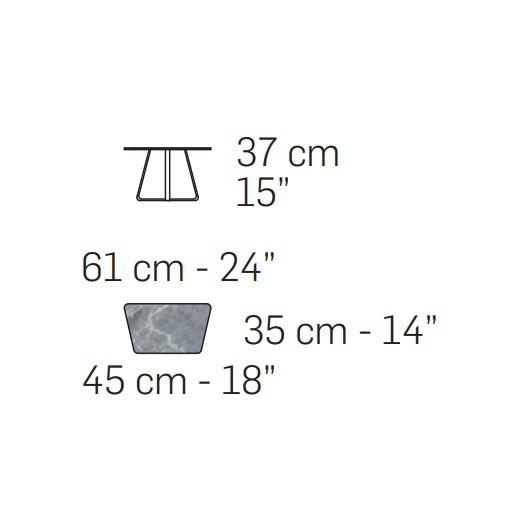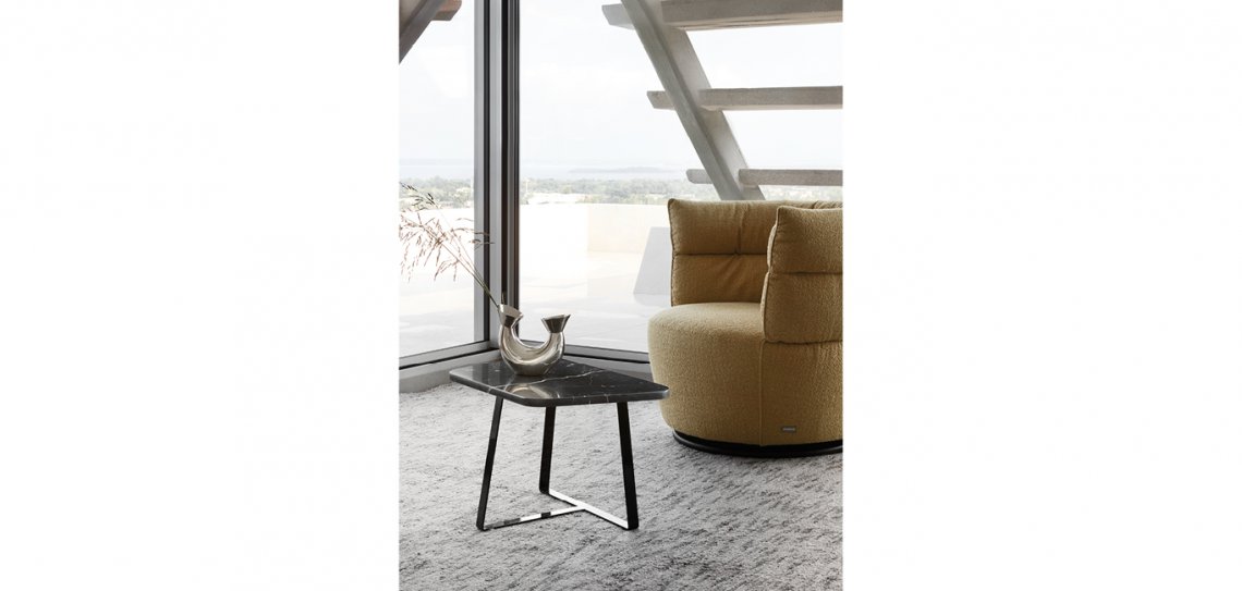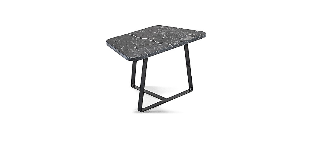 Astratto è un tavolino dalla forma trapezoidale con in piano d’appoggio in marmo creando un oggetto molto raffinato ed elegante.